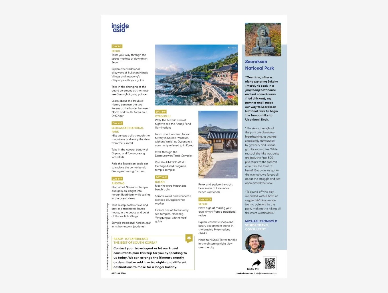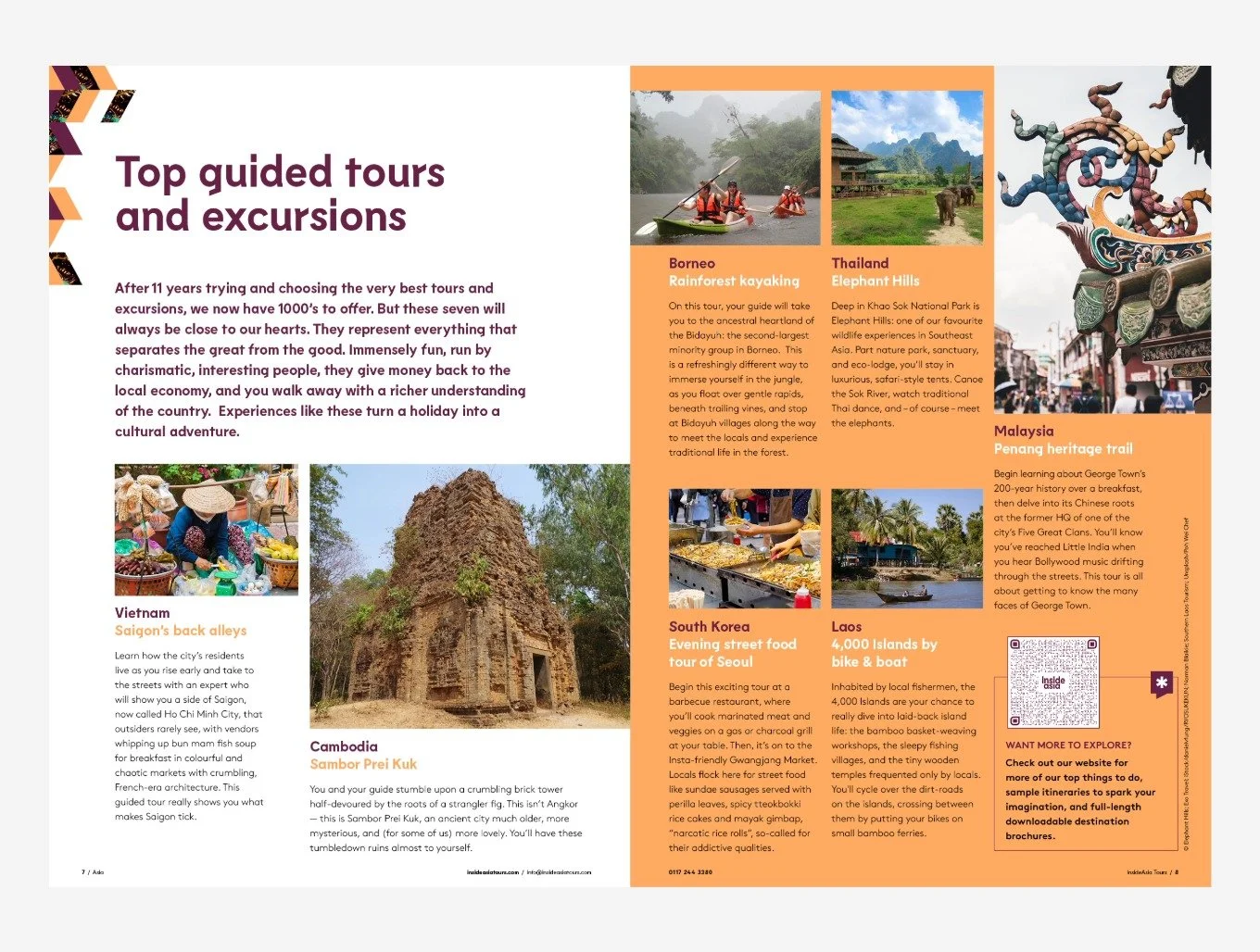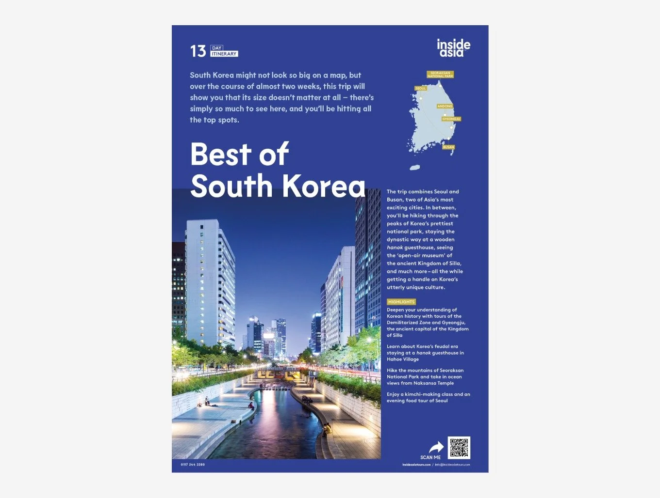Freelance design and production support for Inside Asia, working on brochure and content updates, creating interactive downloadable PDFs for their website, and designing a two-sided promotional flyer for a South Korea itinerary. All work was produced to meet their strict brand guidelines, ensuring the finished materials were consistent, accessible and visually engaging.